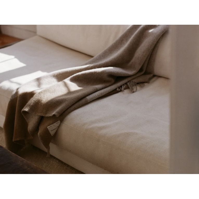 Plaids en laine durable et d'origine responsable sans mulesing. EARTH est un simple duo de couleurs beige chaud dans un design minimaliste. Ajoute une ambiance douce et apaisante à votre maison.