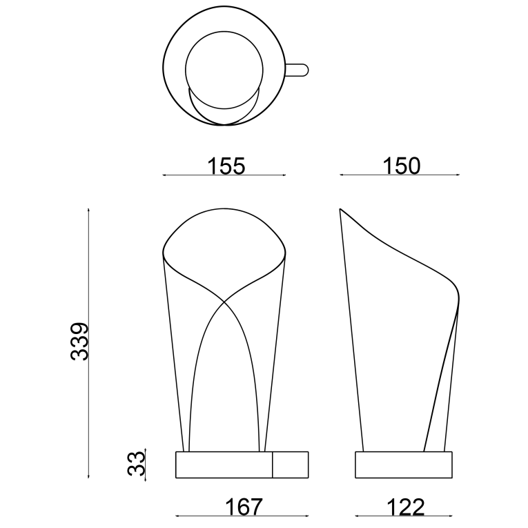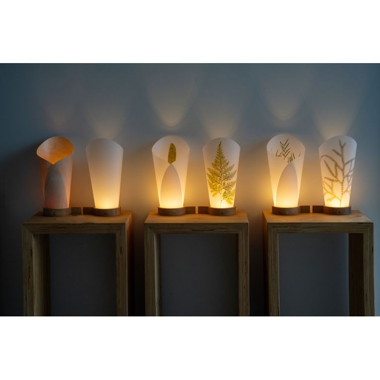 Dusk est proposée dans une taille standard et deux finitions de matériaux : papier Sylvicta et contreplaqué de bouleau.