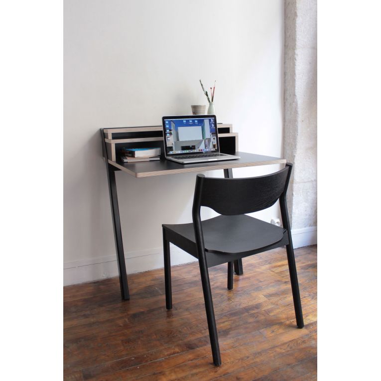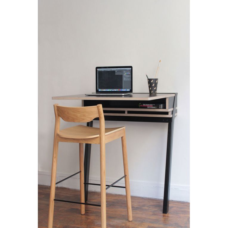 À l'unité - Tréteau en acier recouvert peinture époxy pour la réalisation d'un bureau taille adulte avec plateau reversible hauteur standard à hauteur bar. Meuble à poser contre le mur. Pieds fabriqués en France. Hauteur du plateau inférieur : 75 cm et hauteur plateau supérieur H 90 cm.