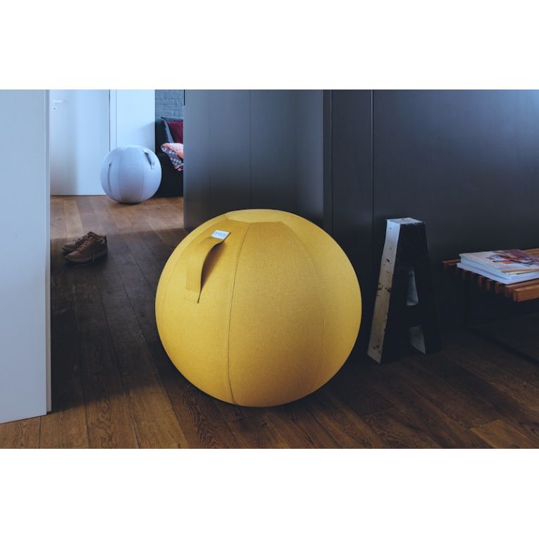 Assise originale et design en forme de ballon : siège de travail ergonomique, ballon d’exercice ou pouf design – le siège Vluv, inspiré du fameux ballon de gymnastique servant au renforcement musculaire et au bon maintien postural combine les bénéfices d’un ballon de yoga ou pilates (Swiss ball) et un habillage élégant et design.